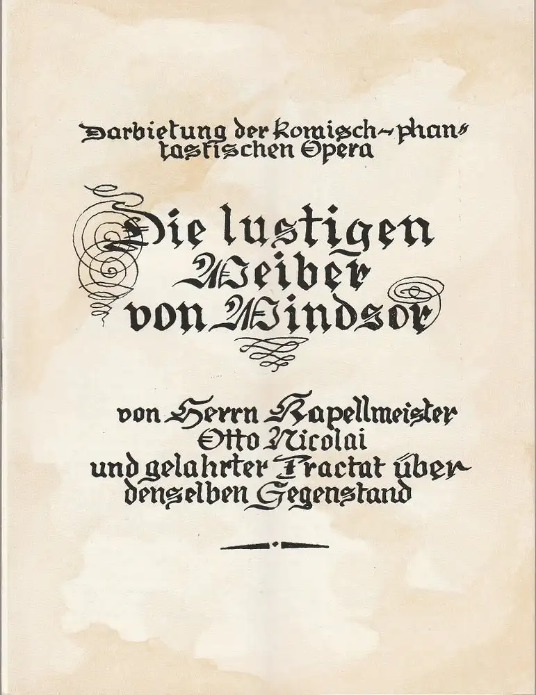 Komisch-phantastische Oper. Libretto nach Shakespears gleichnamigen Lustspiel von Hermann S. Mosenthal. Musikalische Leitung: Walter Heymann. Inszenierung: Ehrhard Warneke. Bühnenbild: Horst Leiteritz. Kostüme: Renate Müller. Chöre: Werner Kraßler. Choreographie: Inge Ziegler. Mitwirkende: Werner Melzer, Eckehard Pohl, Peter Petroff, Lothar Burkhardt, Julius Volbers, u. a. - Theaterprogramm, Opernprogramm, Ballettprogramm, Musicalprogramm, Konzertprogramm, Theatermemorabilia, Programmhefte Sammlung, deutsche Theatergeschichte.