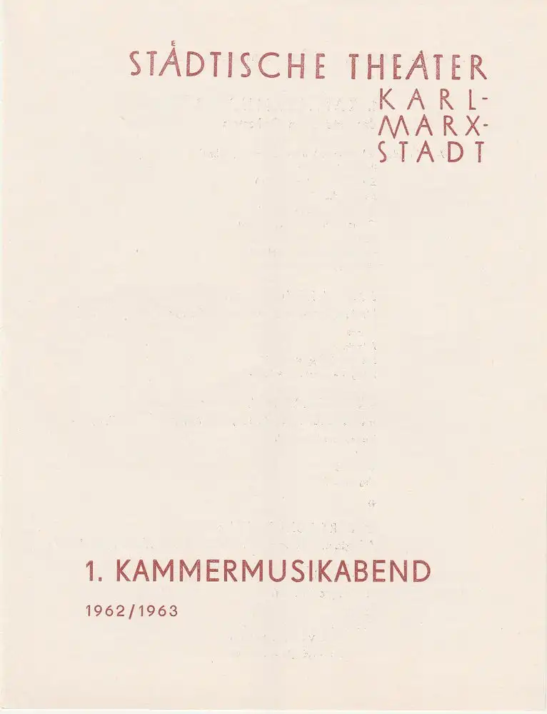 Städtische Theater Karl-Marx-Stadt, Ilse Winter: Programmheft 1. KAMMERMUSIKABEND des Städtischen Orchesters 18. Oktober 1962 Schauspielhaus Spielzeit 1962 / 1963.