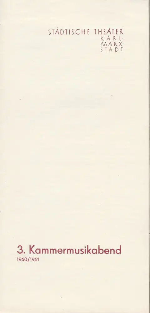 Städtische Theater Karl-Marx-Stadt, Manfred Koerth: Programmheft 3. Kammermusikabend Spielzeit 1960 / 61.