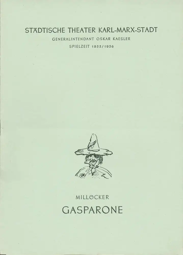 Städtische Theater Karl-Marx-Stadt, Oskar Kaesler, Burkart Hernmarck, Renate Müller: Programmheft Carl Millöcker GASPARONE Neuinszenierung 28. September 1955 Spielzeit 1955 / 56.