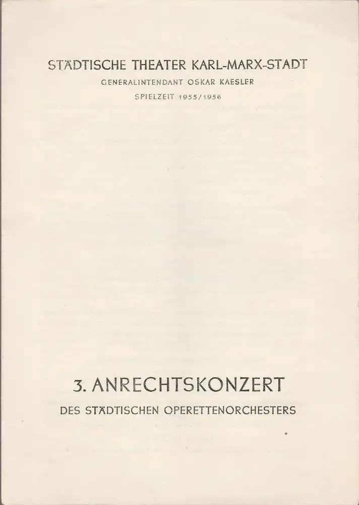 Städtische Theater Karl-Marx-Stadt, Oskar Kaesler: Programmheft 3. ANRECHTSKONZERT des städtischen Operettenorchesters 3. März 1956 Operettenhaus Spielzeit 1955 / 56.