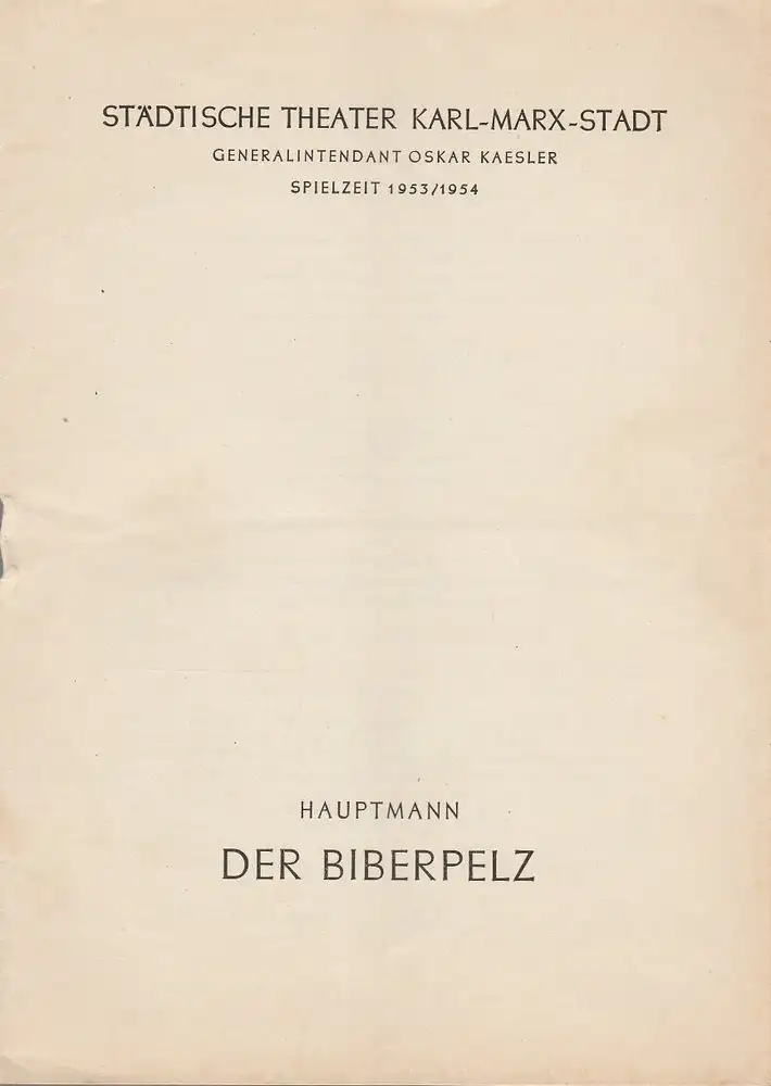 Städtische Theater Karl-Marx-Stadt, Oskar Kaesler, Wolf Ebermann, Kurt Leimert: Programmheft Gerhart Hauptmann DER BIBERPELZ Spielzeit 1953 / 54.