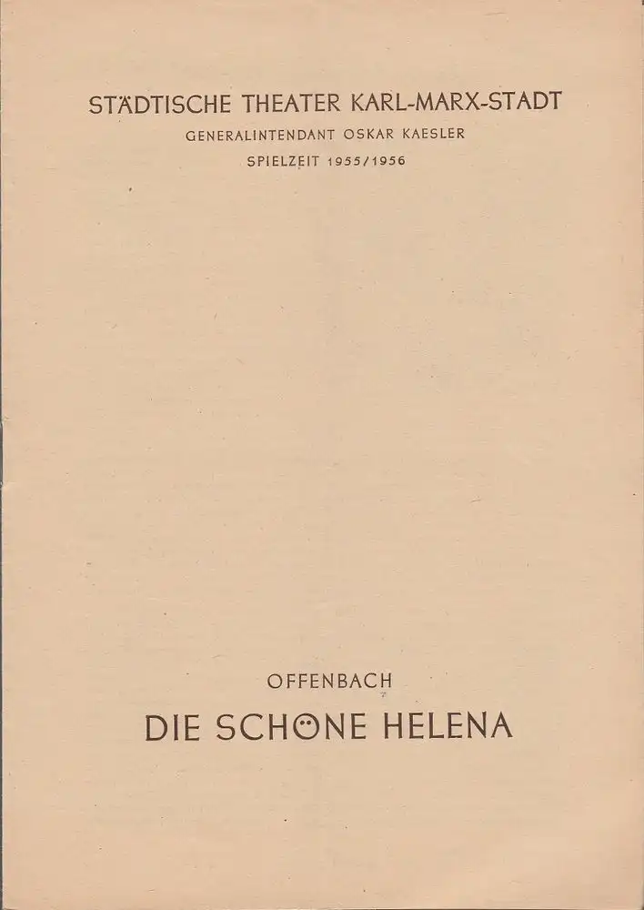 Städtische Theater Karl-Marx-Stadt, Oskar Kaesler, Wolf Ebermann, Renate Müller, Margarete Gaitzsch: Programmheft Jacques Offenbach DIE SCHÖNE HELENA Spielzeit 1955 / 56.