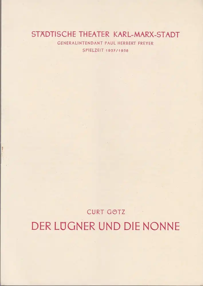 Städtische Theater Karl-Marx-Stadt, Paul Herbert Freyer, Kurt Leimert, Sigrid Vollrath: Programmheft Curt Götz DER LÜGNER UND DIE NONNE Spielzeit 1957 / 58.