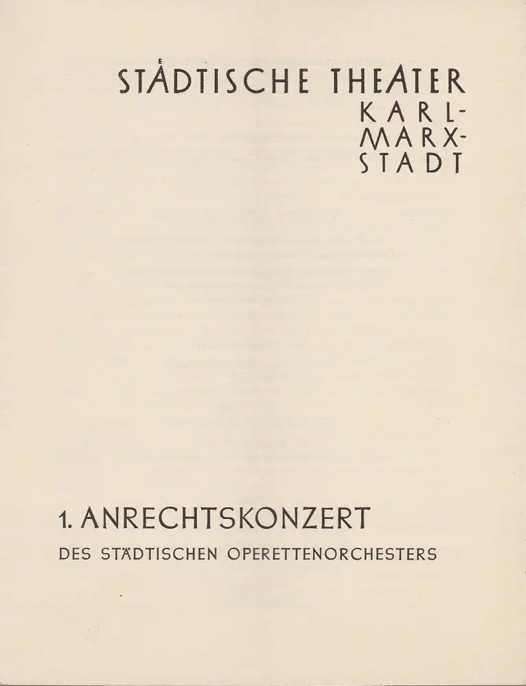 Städtische Theater Karl-Marx-Stadt, Paul Herbert Freyer: Programmheft 1. ANRECHTSKONZERT des städtischen Operettenorchesters 23. November 1957 Operettenhaus Spielzeit 1957 /1958.