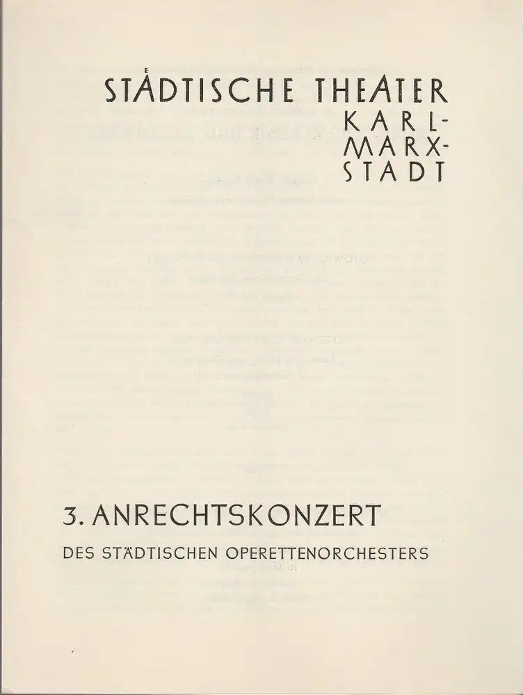 Städtische Theater Karl-Marx-Stadt, Paul Herbert Freyer: Programmheft 3. ANRECHTSKONZERT des städtischen Operettenorchesters 15. März 1958 Operettenhaus Spielzeit 1957 /1958.