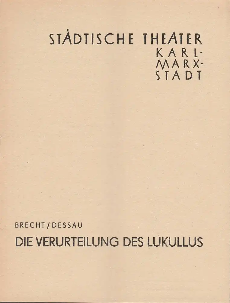 Städtische Theater Karl-Marx-Stadt, Paul Herbert Freyer, Wolf Ebermann, Burkart Hernmarck, Ferencz Szönyl: Programmheft Bertolt Brecht / Paul Dessau DIE VERURTEILUNG DES LUKULLUS Premiere 11. November 1959 Spielzeit 1959 / 60.