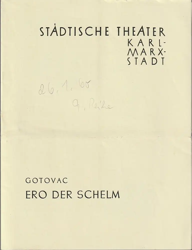 Städtische Theater Karl-Marx-Stadt, Paul Herbert Freyer, Wolf Ebermann, Burkart Hernmarck, Manfred Glöckner: Programmheft Jakov Gotovac ERO DER SCHELM Neuninzenierung 30. Mai 1959 Spielzeit 1959 / 60.