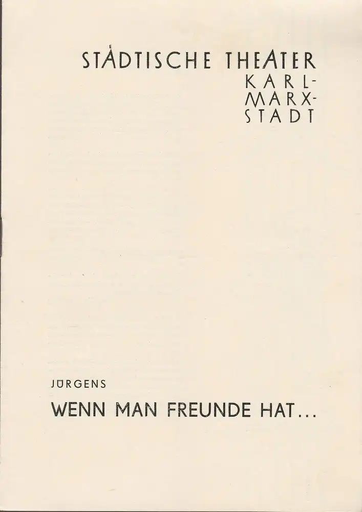 Städtische Theater Karl-Marx-Stadt, Paul Herbert Freyer, Wolf Ebermann, Sigrid Vollrath: Programmheft Uraufführung Claus Jürgens WENN MAN FREUNDE HAT 22. Juni 1957 Spielzeit 1957 / 58.