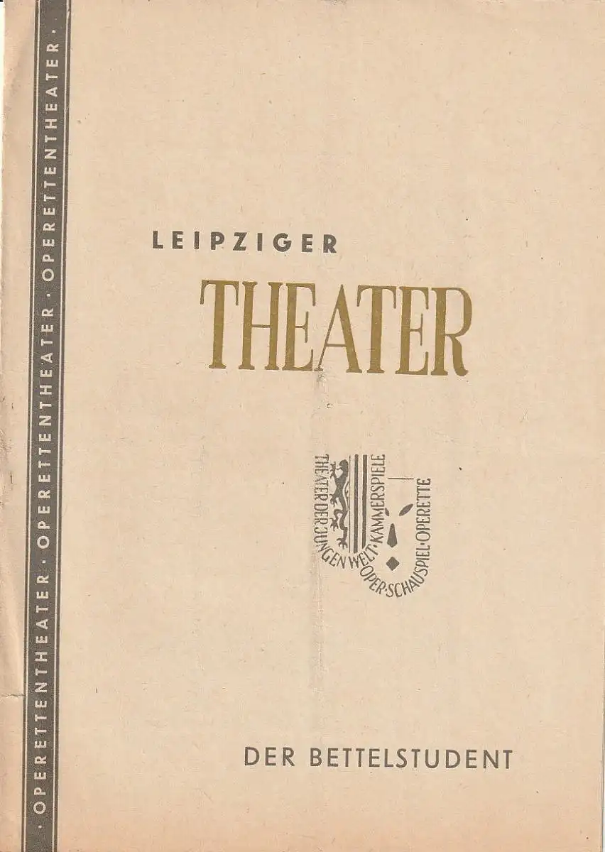 Operette. Inszenierung: Fred Praski. Musikalische Leitung: Adolf Hofmann. Bühne: Paul Pilowski. Kostüme: Elisabeth Baudisch. Tänze: Ingo Theß. Mitwirkende: Edla Moskalenko, Lisa Thomas.Muschau, Christa Nowak, Gerda Ernst / Gisela Zitzmann, Walter OfieraHeinz Scholze, u. a. - Theaterprogramm, Opernprogramm, Ballettprogramm, Musicalprogramm, Konzertprogramm, Theatermemorabilia, Programmhefte Sammlung, deutsche Theatergeschichte.