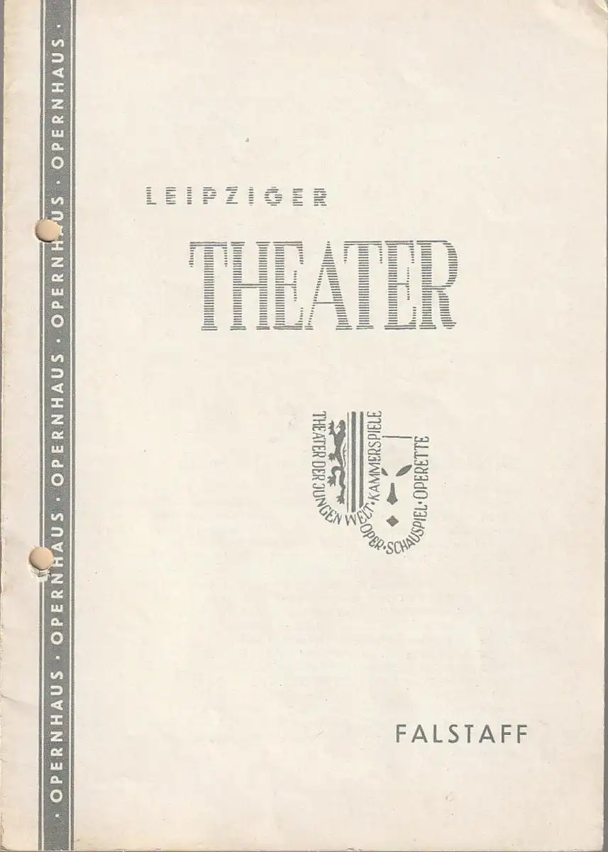 Lyrische Komödie in drei Akten nach Shakespeares Die lustigen Weiber von Windsor. Musikalische Leitung: Horst Seydelmann. Inszenierung: Joachim Herz. Bühne: Max Elten. Kostüme: Eleonore Kleiner. Choreographie: Johannes Richter. Regieassistenz: Walter Rösler. Mitwirkende: Kurt Rösinger, Bruno Aderhold, Ursula Brömme, Ursula Engert, Anna barova, Sigrid Kehl, Walter Schmidt, u. a. - Theaterprogramm, Opernprogramm, Ballettprogramm, Musicalprogramm, Konzertprogramm, Theatermemorabilia, Programmhefte Sammlung, deutsche Theatergeschichte.
