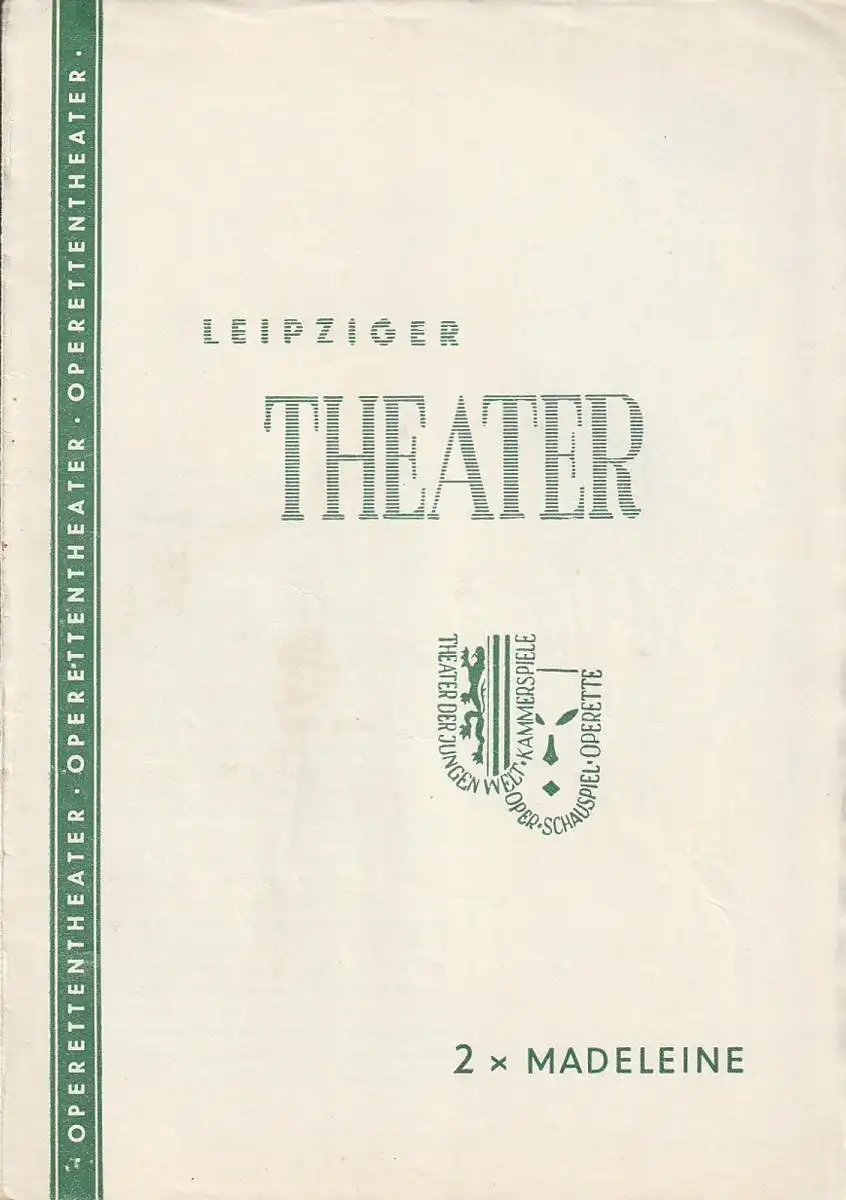 Städtische Theater Leipzig, Karl Kayser, Hans Michael Richter, Dietrich Wolf, Hanna Reichelt ( Skizzen ): Programmheft Jochen Allihn ZWEIMAL MADELEINE Spielzeit 1959 / 60 Heft 2.