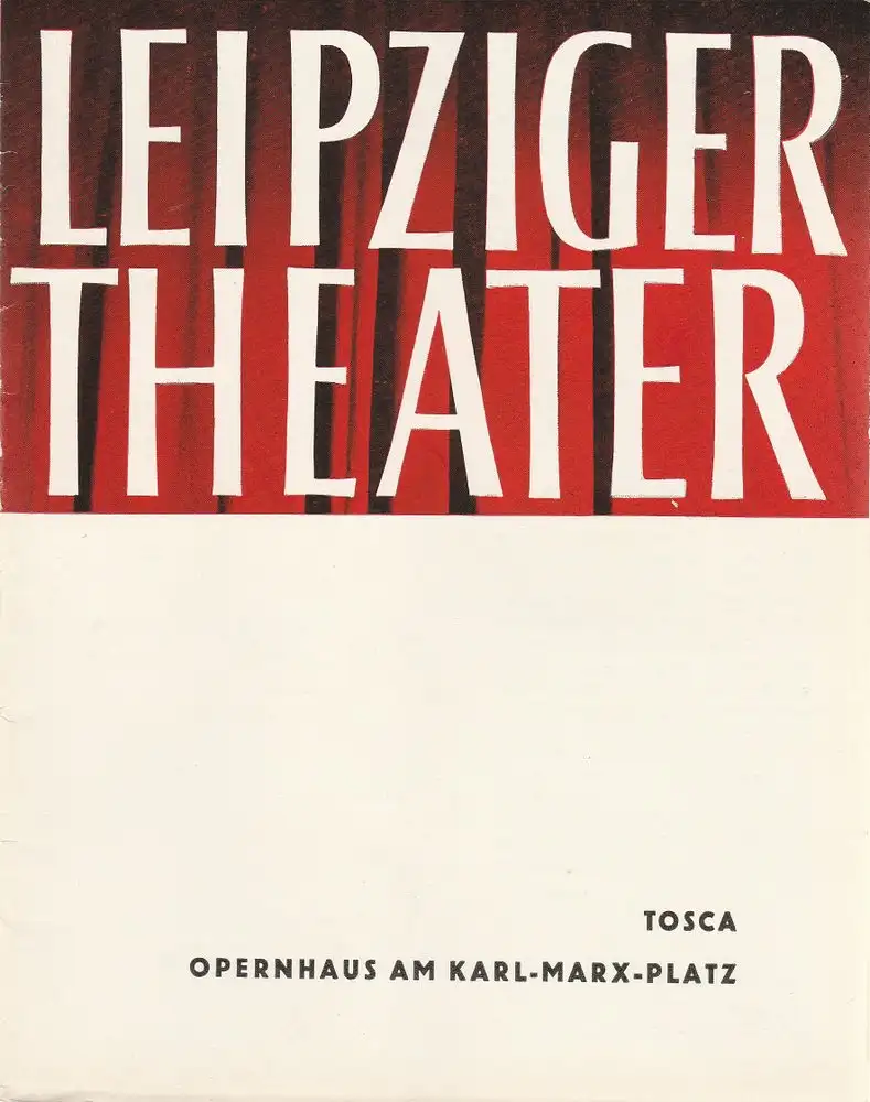 Musikdrama in drei Aufzügen nach Sardou von Luigi Illica und Giuseppa Giacosa. Musikalische Leitung: Rolf Reuter. Inszenierung: Carl Riha. Bühne: Max Elten. Kostüme: Elisabeth Selle. Mitwirkende: Marta Röth, Rolf Apreck, Stefanoff Petroff, Kurt Rösinger, Juraj Hrubant, u. a. - Theaterprogramm, Opernprogramm, Ballettprogramm, Musicalprogramm, Konzertprogramm, Theatermemorabilia, Programmhefte Sammlung, deutsche Theatergeschichte.
