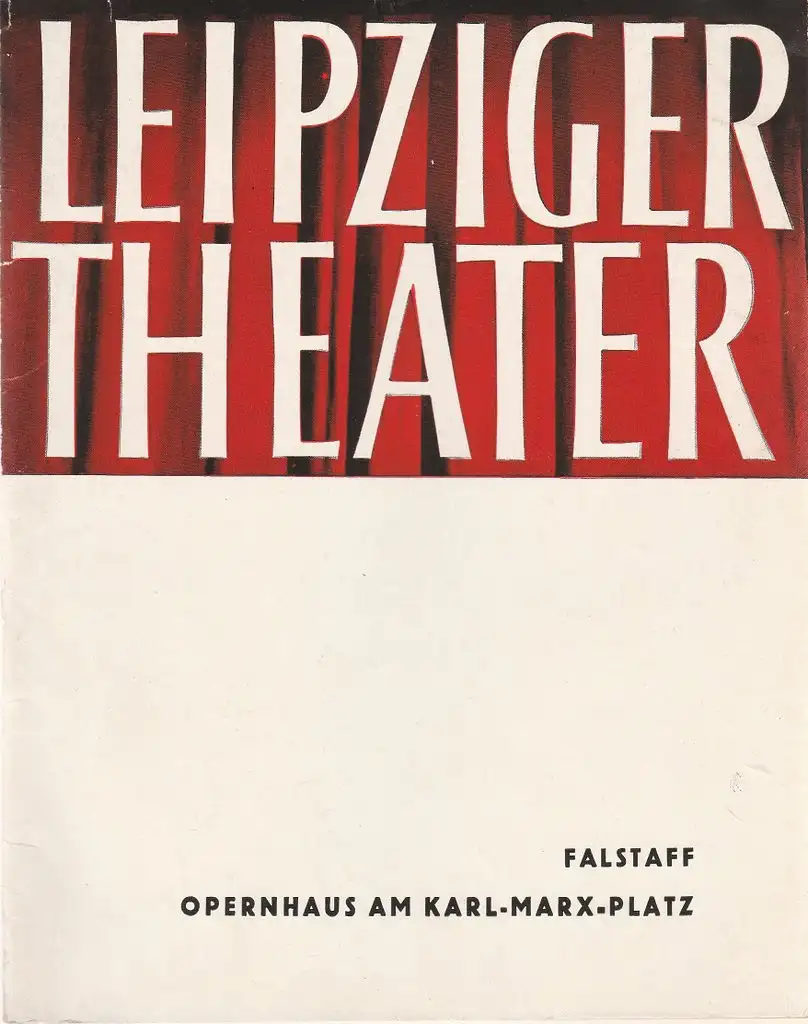 Lyrische Komödie in drei Akten nach Shakespeares Die lustigen Weiber von Windsor und Heinrich IV. Musikalische Leitung: Günter Schubert. Inszenierung: Joachim Herz. Bühne: Max Elten. Kostüme: Eleonore Kleiber. Mitwirkende: Kurt Rösinger, Bruno Aderhold, Ursula Brömme, Hildegard Bondzio, Anna Barova, Katrin Wölzl, Walter Schmidt, Guntfried Speck, u.a. - Theaterprogramm, Opernprogramm, Ballettprogramm, Musicalprogramm, Konzertprogramm, Theatermemorabilia, Programmhefte Sammlung, deutsche Theatergeschichte.