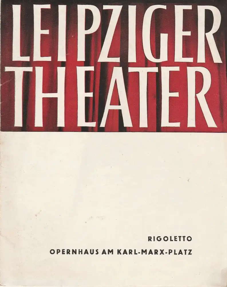 Oper in drei Akten nach Victor Hugos Drama: Der König amüsiert sich, von Francesco Maria Piave. Musikalische Leitung: Hans-Jörg Leipold. Inszenierung: Joachim Herz. Gesamtausstattung: Alfred Siercke. Choreographie: Marion Schurath. Mitwirkende: Bruno Aderhold, Ute Mai, Anne Kristin Paul, Walter Schmidt, Stefanoff Petroff, u. a. - Theaterprogramm, Opernprogramm, Ballettprogramm, Musicalprogramm, Konzertprogramm, Theatermemorabilia, Programmhefte Sammlung, deutsche Theatergeschichte.