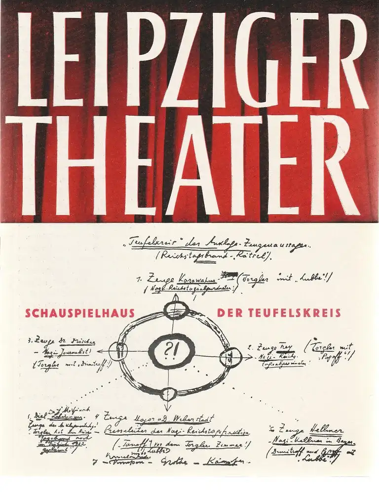 Inszenierung: Horst Smiszek. Musik: Joachim-Dietrich Link. Bühne: Jochen Schube. Projektionen: Kurt Reginbogin. Kostüme: Christa Hahn. Mitwirkende: Hans-Joachim Hegewald, Marlies Reusche, Wolfgang Jakob, Käte Koch, Werner Godemann, Hans-Robert Wille, Heinz Gothe, Carl Bruno, u.a. - Theaterprogramm, Opernprogramm, Ballettprogramm, Musicalprogramm, Konzertprogramm, Theatermemorabilia, Programmhefte Sammlung, deutsche Theatergeschichte.