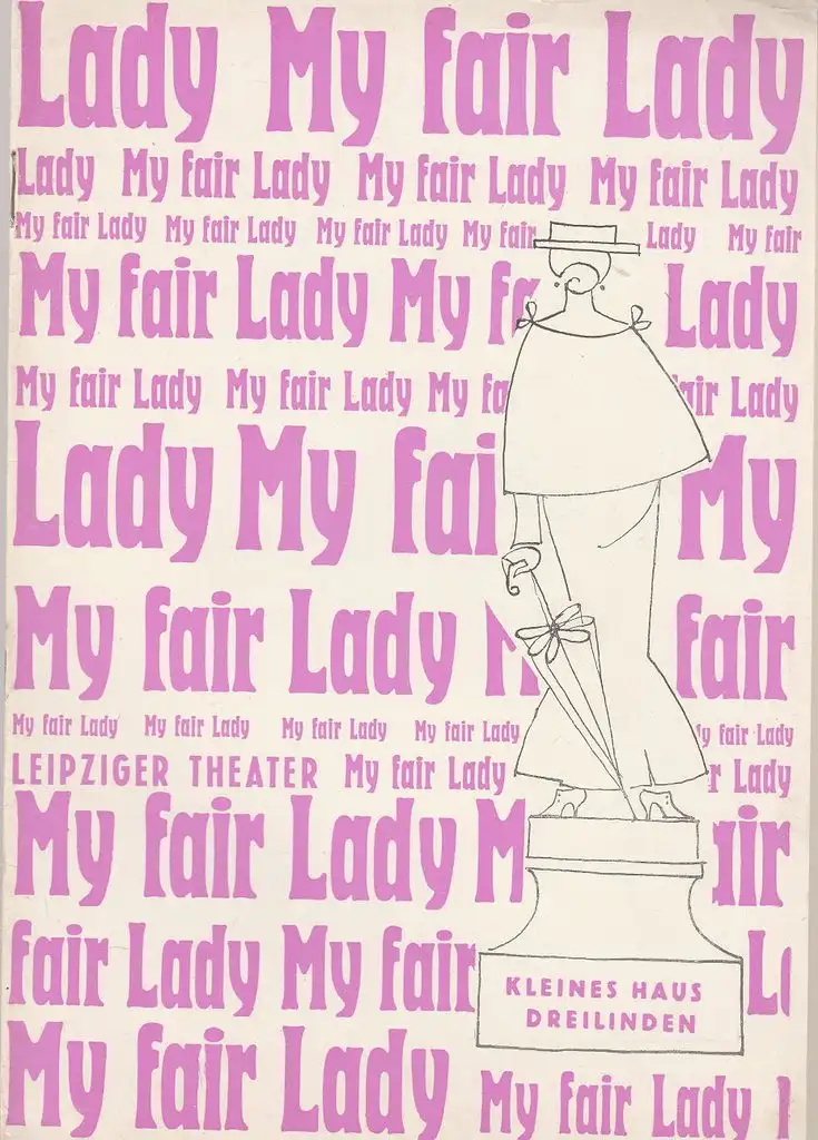 Musical nach Bernard Shaw´s Pygmalion und dem Film von Gabrial Pascal. Buch von Alan Jay Lerner. Musik: Frederick Loewe. Inszenierung: Wolfgang Weit. Musikalische Leitung: Ralph Rank. Bühne: Max Elten. Kostüme: Renate Scheffel-Thomas. Choreographie: Wolfgang Baumann. Mitwirkende: Ingeborg Rudolph, Margot Ebert, Heinz Petters, Otto Stübler, Helmut Polze, Werner Schröter, Lothar Froese, Günter Böhne, Hans Jähnert, Gerhard Hüter, u.a. - Theaterprogramm, Opernprogramm, Ballettprogramm, Musicalprogramm, Konzertprogramm, Theatermemorabilia, Programmhefte Sammlung, deutsche Theatergeschichte.