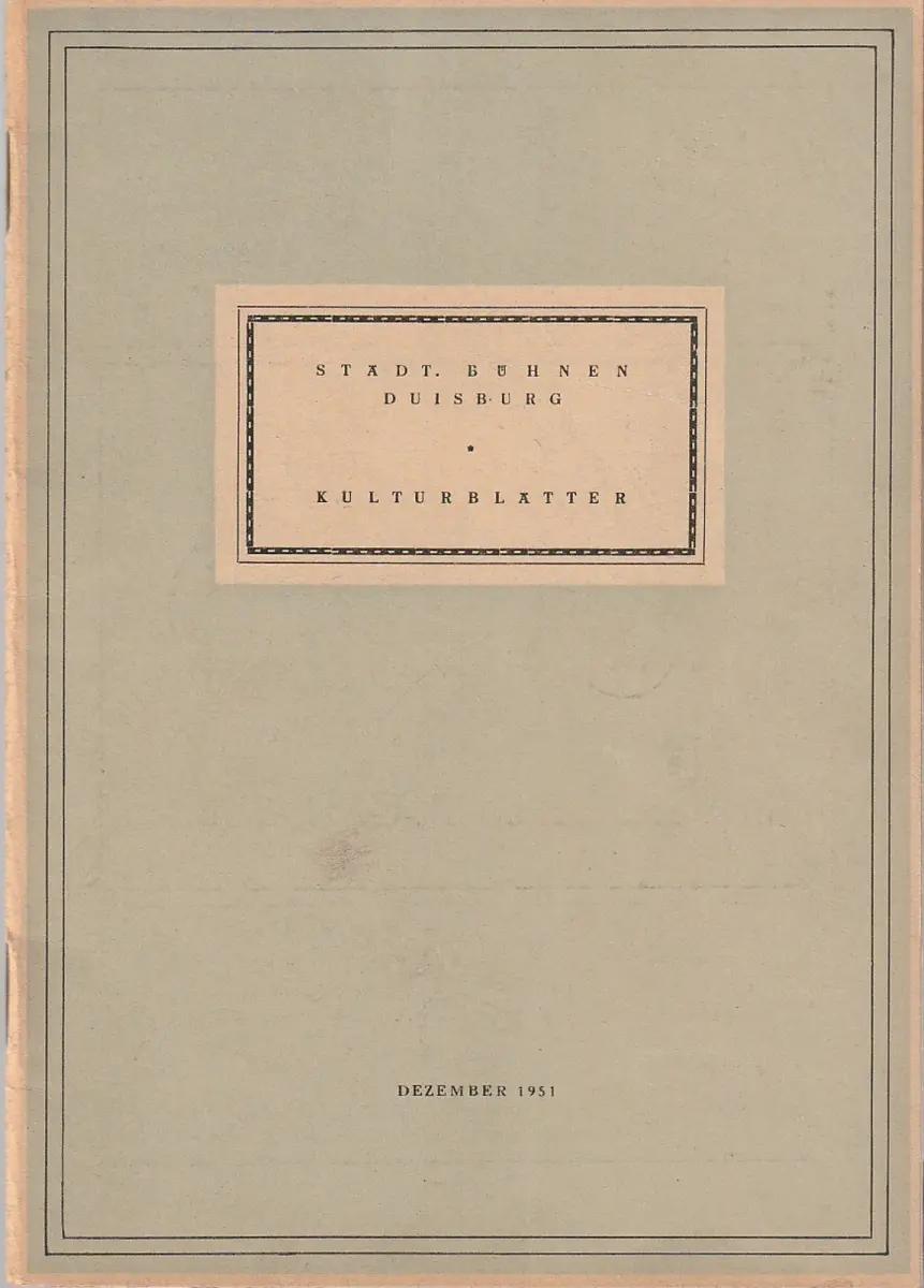 Städtisches Kulturamt Duisburg, Carl Mandelartz: KULTURBLÄTTER Städtische Bühnen Duisburg DEZEMBER 1951 Heft 3.