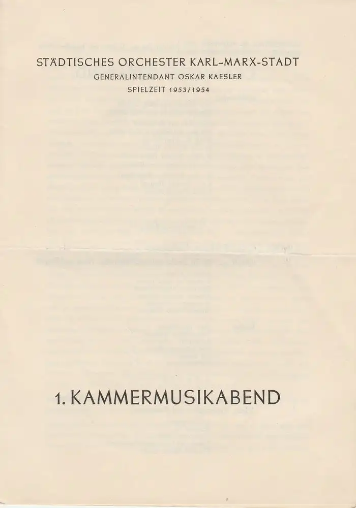 Städtisches Orchester Karl-Marx-Stadt, Oskar Kaesler: Programmheft 1. KAMMERMUSIKABEND 26.November 1953 Theater am Karl-Marx-Platz Spielzeit 1953 / 1954.