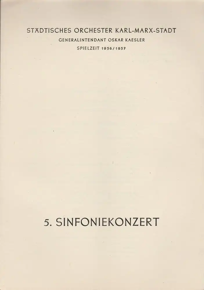 Städtisches Orchester Karl-Marx-Stadt, Oskar Kaesler: Programmheft 5. Sinfoniekonzert Spielzeit 1956 / 57.