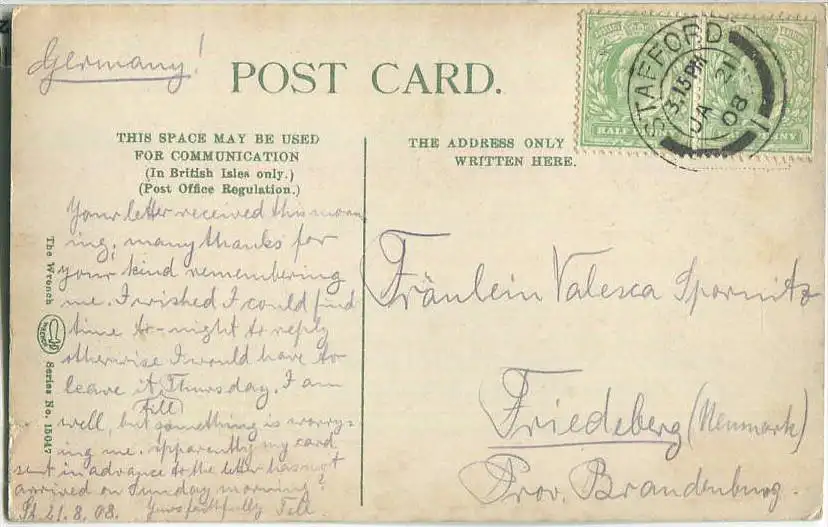 Stafford - Ancient High House - Railway Collecting Van - kleine Stempelspur (G38686) gel. 1908