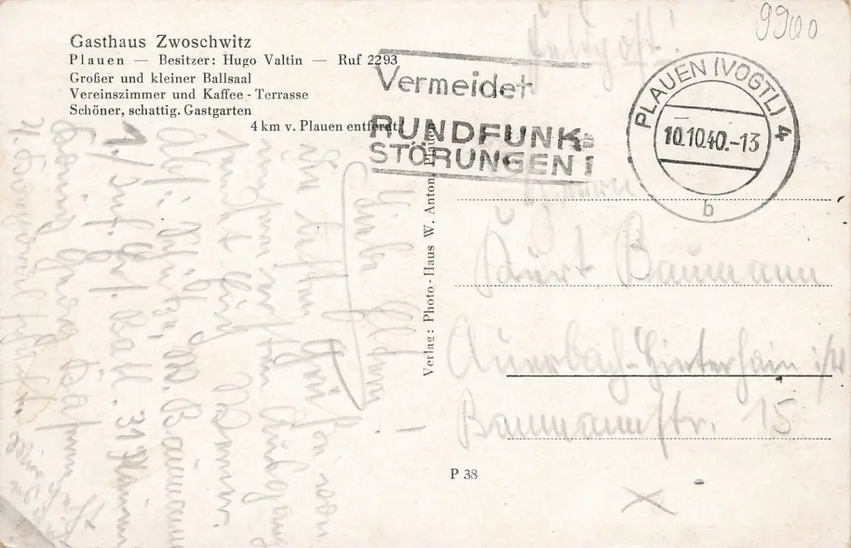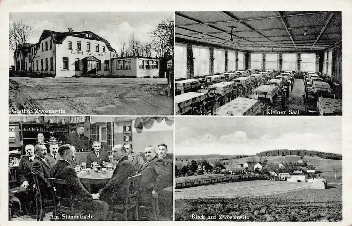 Stammtisch und Saal Gasthof in Zwoschwitz Vogtland Sachsen Postkarte AK 1940