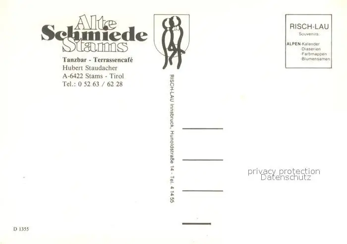 Stams Terrassen Café Tanzbar Alte Schmiede Bar Stams postalisch nicht gelaufen nach 1965 Erhaltung siehe scans [FriedD77] Frierer
