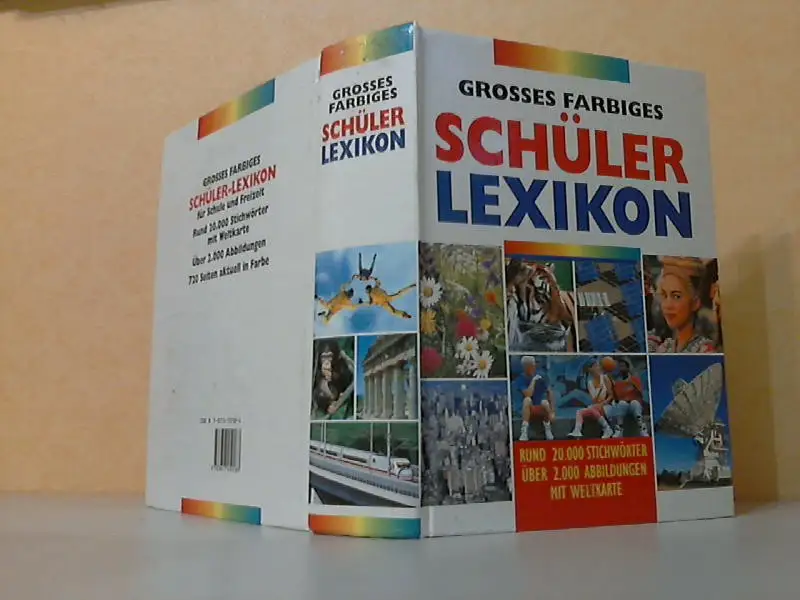 die Seiten und der Einband sind altersbedingt gebräunt, fleckig, vorn erste Seite (Deckblatt) Eigentumsnachweis raus geschnitten, "Grosses farbiges Schüler Lexikon", für Schule und Freizeit. Rund 20.000 Stichwörter, über 2.000 Abbildungen mit Weltkarte, 720 Seiten aktuell in Farbe. Beschreibung vom Antiquariat Ardelt 1h4a ISBN-Nummer: 3817470029 Antiquariat Ardelt