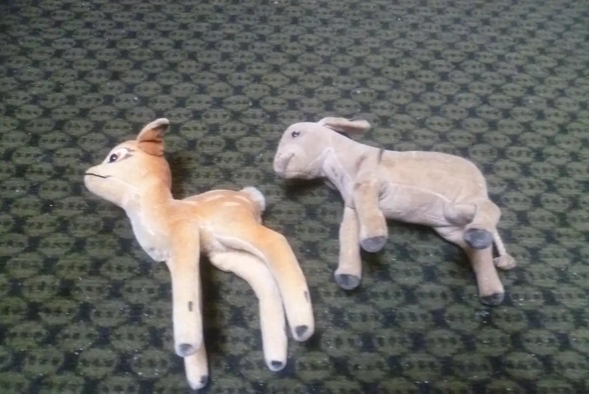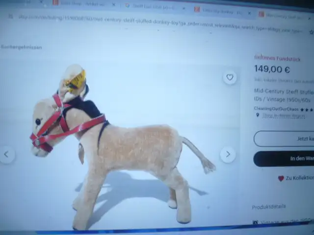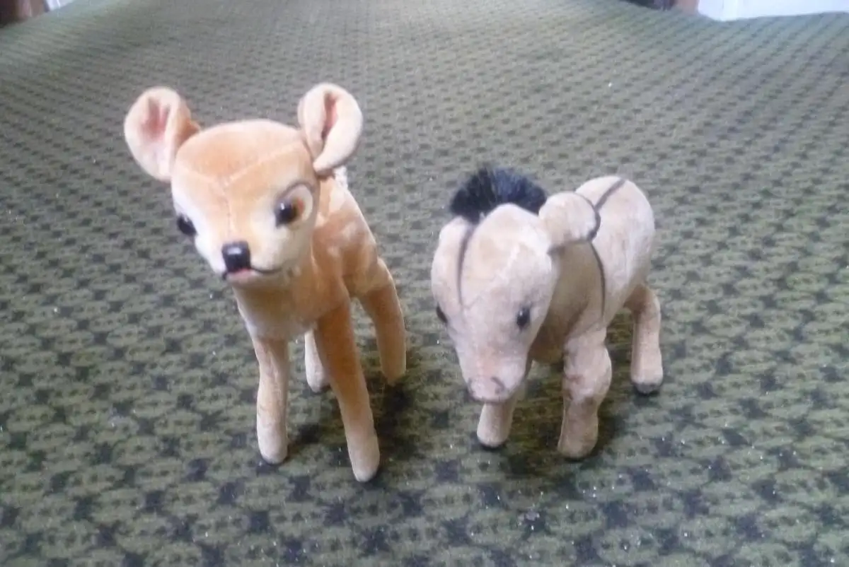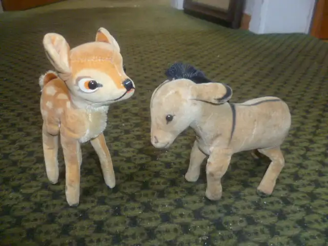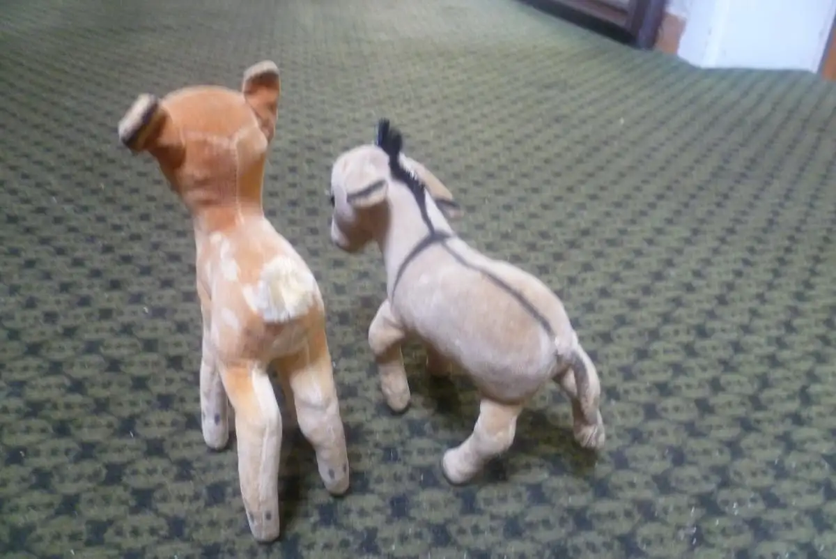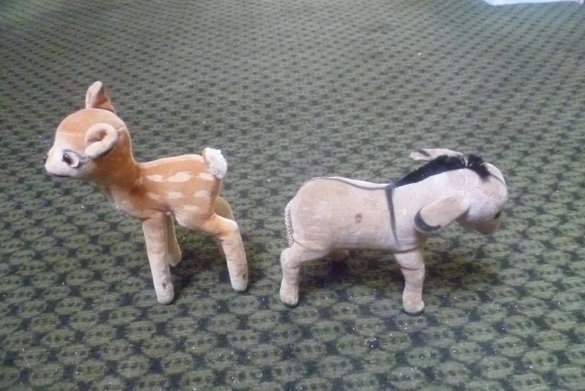 Steiff Samt Esel 1412/00 von 1949-1958 und Samt Disney Bambi 7422/00 US Zone Fahne Knopf fehlend! aus den 1951-53 Jahren ca10 x 15cm