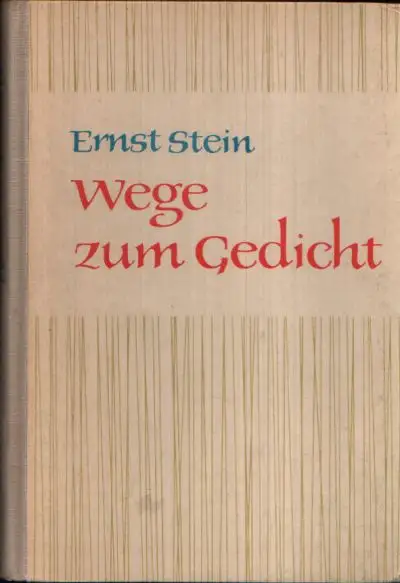 Wege zum Gedicht; Stein, Ernst; Fachbuch; Schulbuch; Besonderheit und Absicht des Gedichts; Einführung in die Metrik; Von der Prosa zur Poesie; Ursprung und Wirkung des Rhythmus; Von den Versmaßen; Bau der Strophe; Sinn und grenze des freien Rhythmus; Zur Wirkung künstlerischer Mittel in der Lyrik; Über einige arten des Gedichts; Folgerungen für den Literaturunterricht