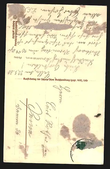 alte Ansichtskarte, gelaufen 1930, Briefmarke entfernt, rückseitig Oberflächenschaden, rückseitig Klebe- und Papierreste