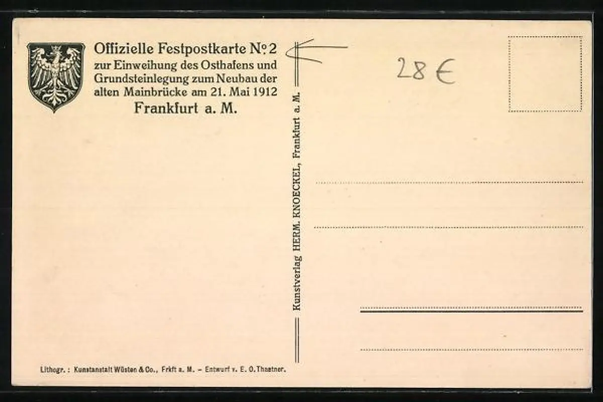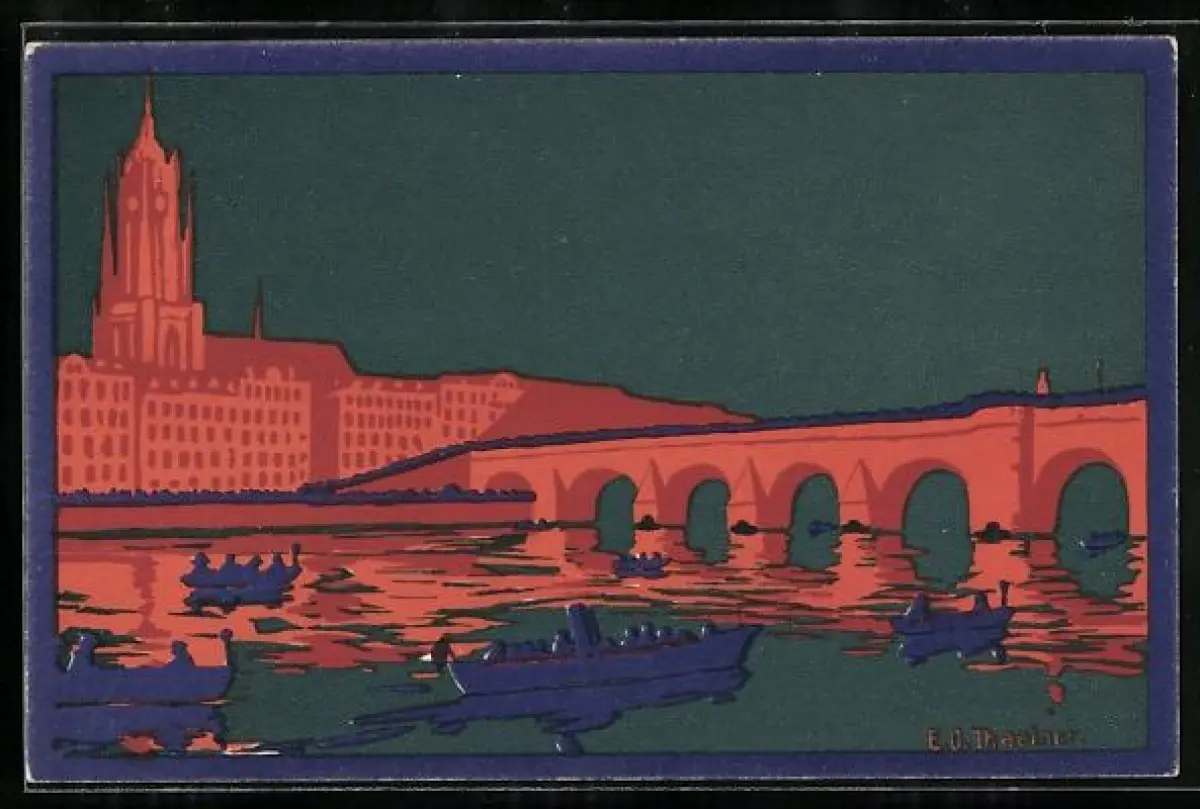 Steindruck-AK Frankfurt a. M., Panorama mit Kaiserdom St. Bartholomäus und Mainbrücke