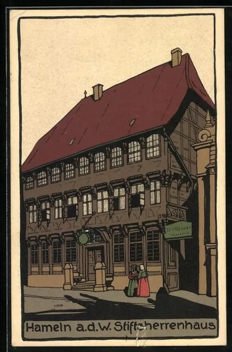 Steindruck-AK Hameln a. d. Weser, Partie am Stiftsherrenhaus
