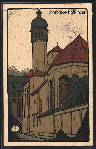 Steindruck-AK Innsbruck, Blick zur Hofkirche
