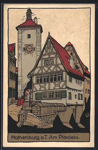 Steindruck-AK Rothenburg o.T., Am Plönlein