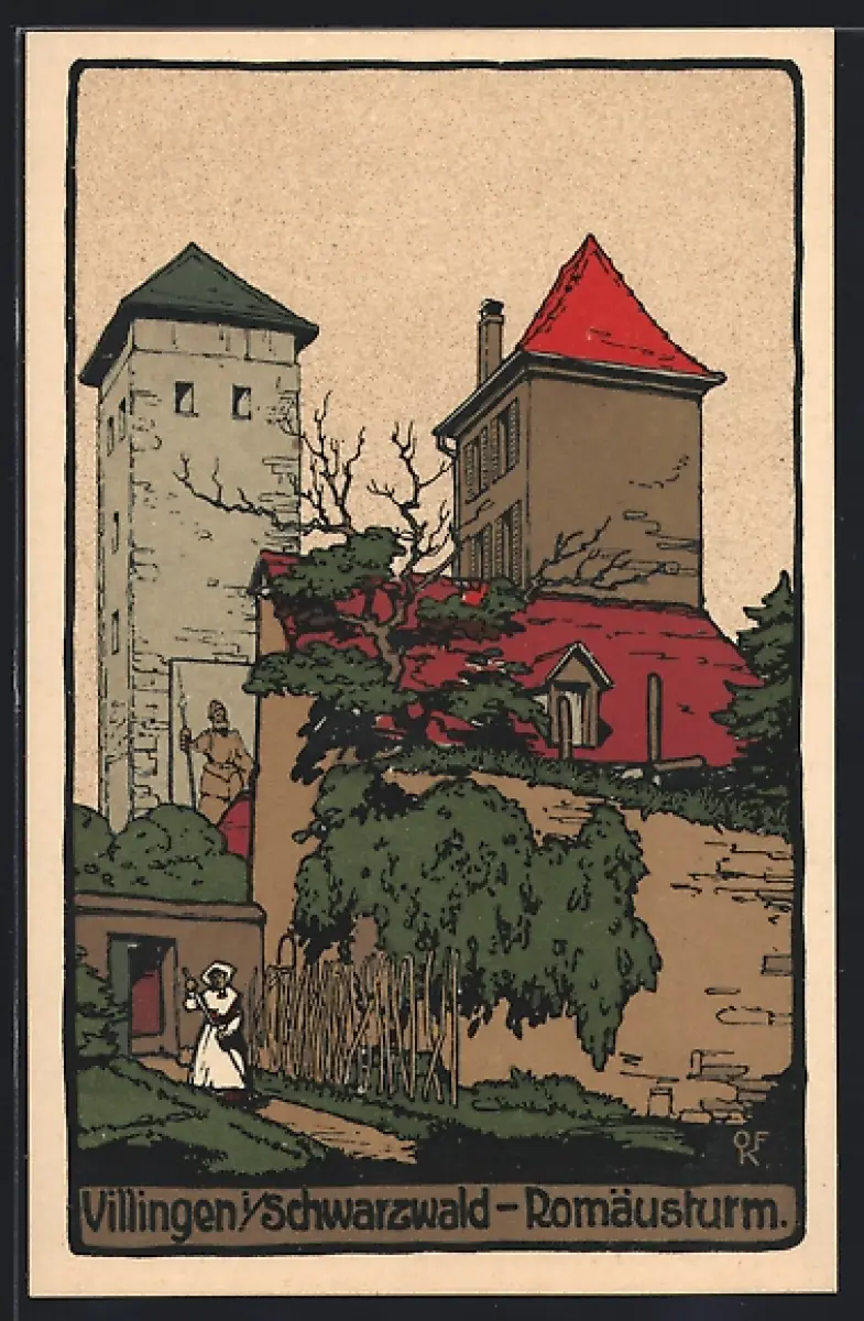 Steindruck-AK Villingen /Schwarzwald, Romäusturm