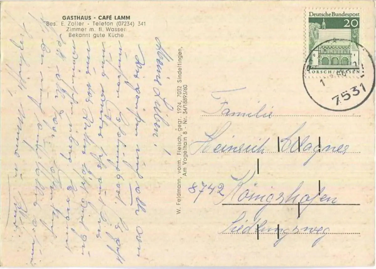Steinegg - Gasthaus Cafe Lamm - Besitzer E. Zoller - Verlag W. Feldmann Sindelfingen