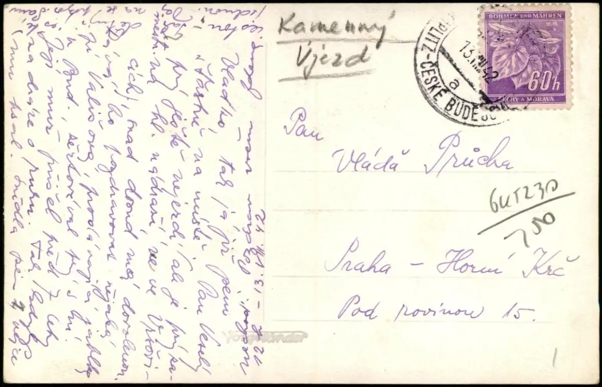 Steinkirchen Kamenný Újezd Blick auf die Stadt - Bz Budweis 1942