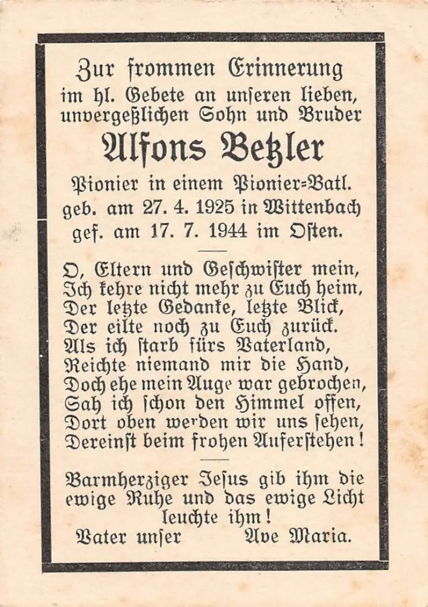 Sterbebild Pionier eines Pionier - Bataillon gefallen 1944 Ostfront