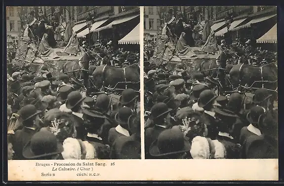 Stereo-AK Bruges, Procession du Saint Sang, Le Calvaire