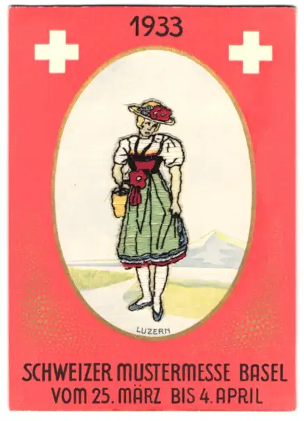 Stick-AK Basel, Schweizer Mustermesse 1933, Luzernerin in Tracht