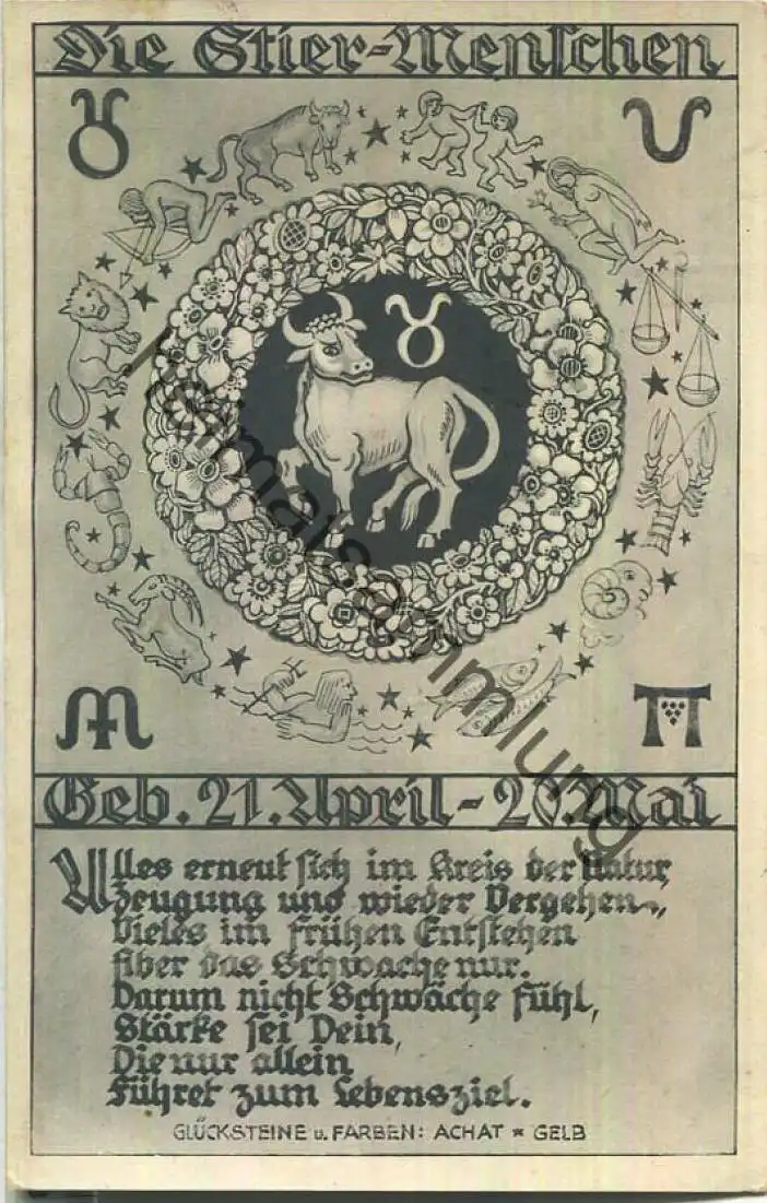 Stier - Rückseite Beschreibung der Eigenschaften - Rückseite beschrieben (E90761) *