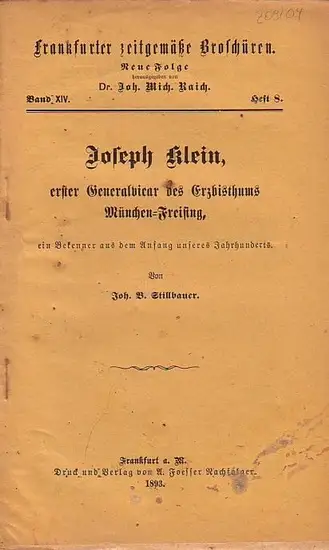 Stillbauer, Jon. B. // Raich, John. Mich. (Hrsg.): Frankfurter zeitgemäße Broschüren. Neue Folge Band XIV. Heft 8. - Joseph Klein, erster Generalvicar des Erzbisthums München-Freising, ein Bekenner aus dem Anfang unseres Jahrhunderts.