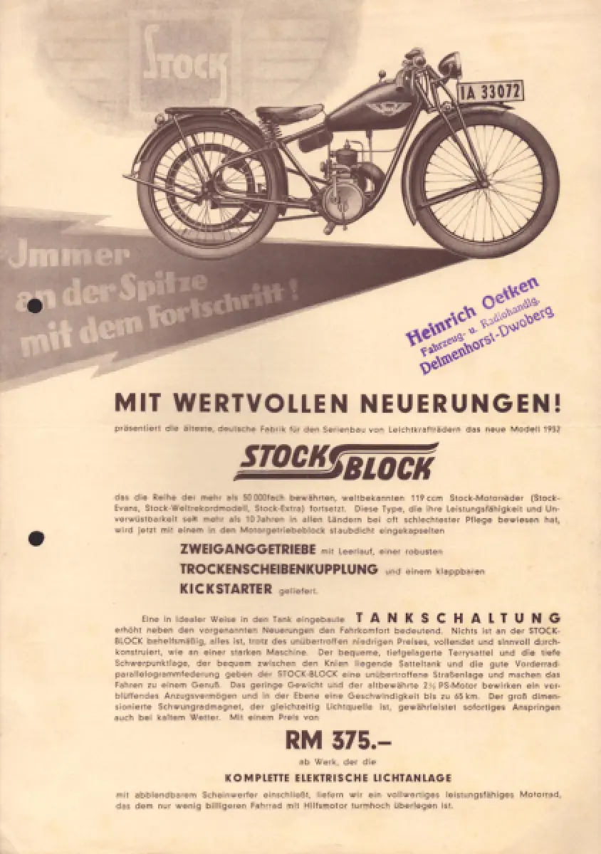 Stock Block 119 ccm Prospekt 1932
