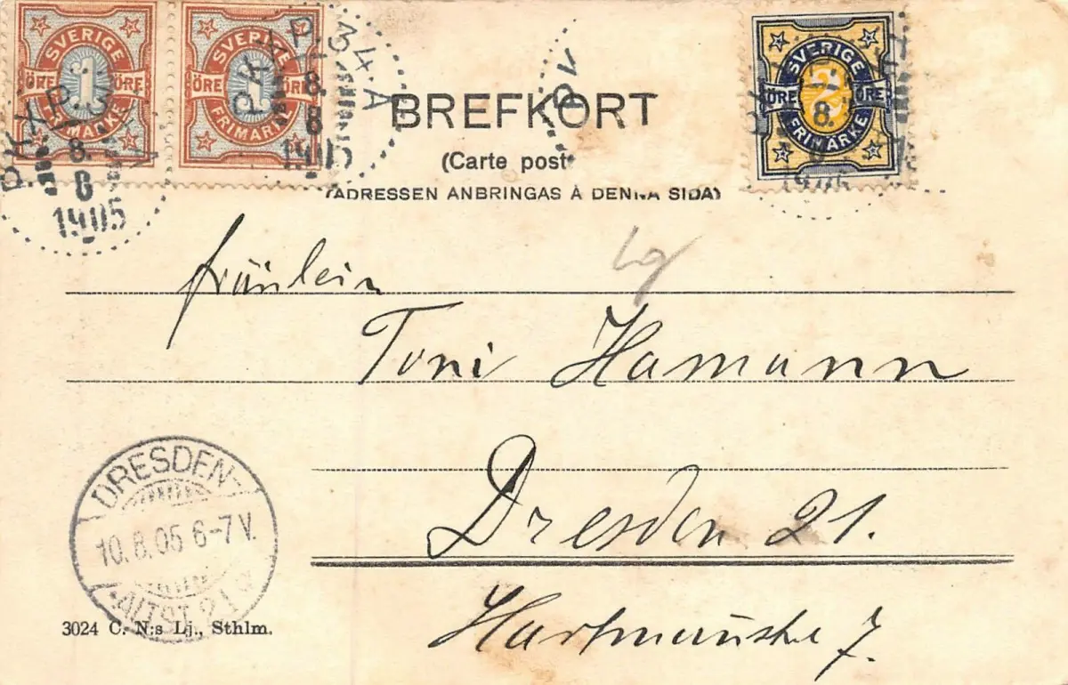 Rückseite: gelaufen 1905 nach Dresden-Altst.