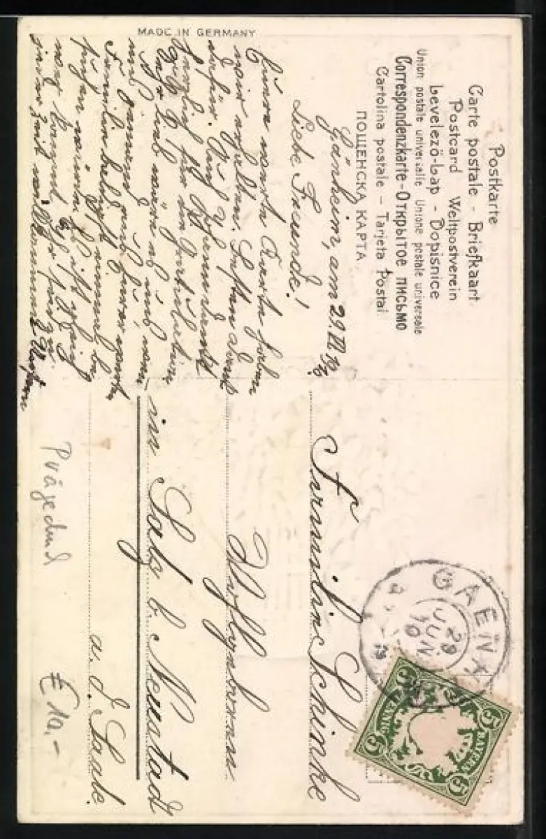 alte Ansichtskarte, gelaufen 1910, guter Zustand
