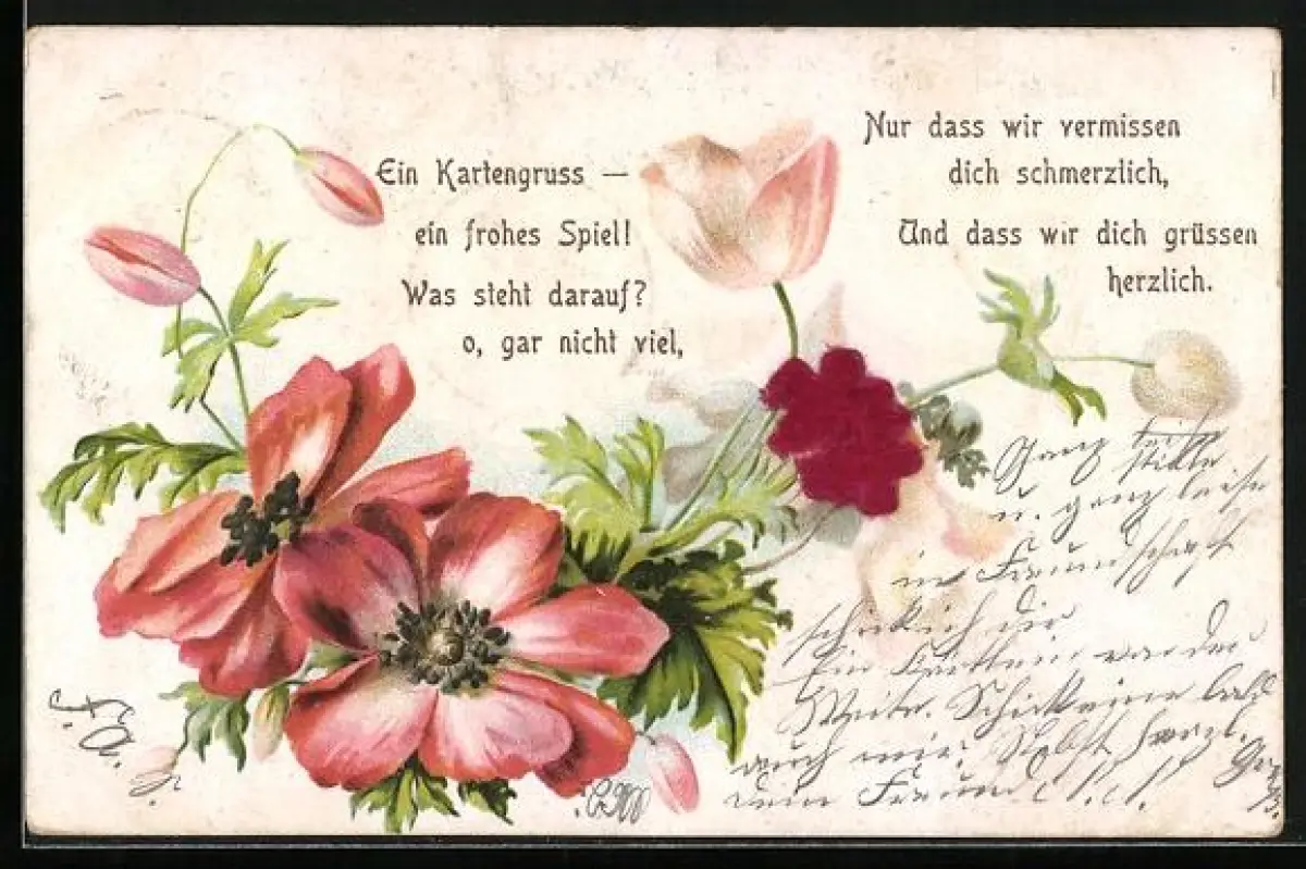 Stoff-Präge-AK Ein Kartengruss, ein frohes Spiel!..., Mohnblumen