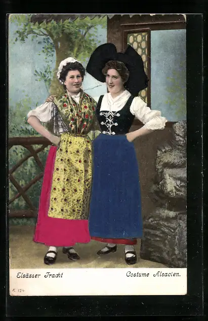 Stoff-Präge-AK Frauen in elsass-lothringische Tracht