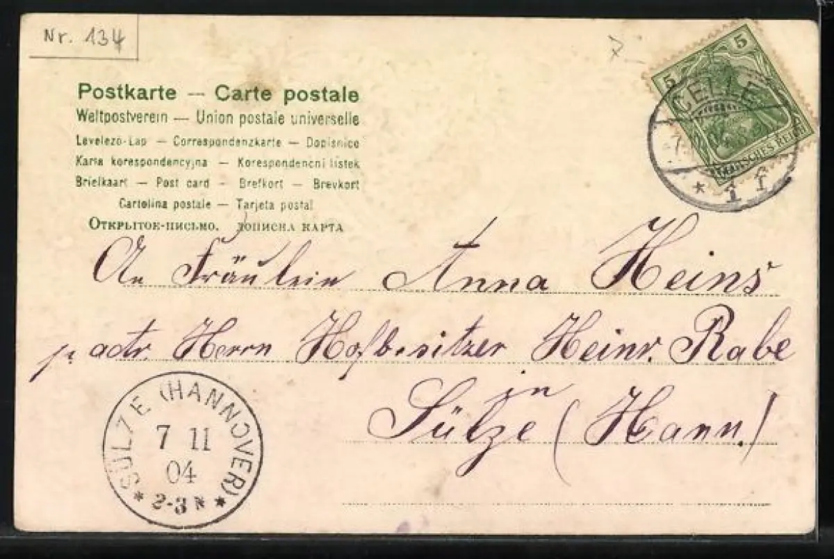 alte Ansichtskarte, gelaufen 1904, Eckknick oben re., guter Zustand