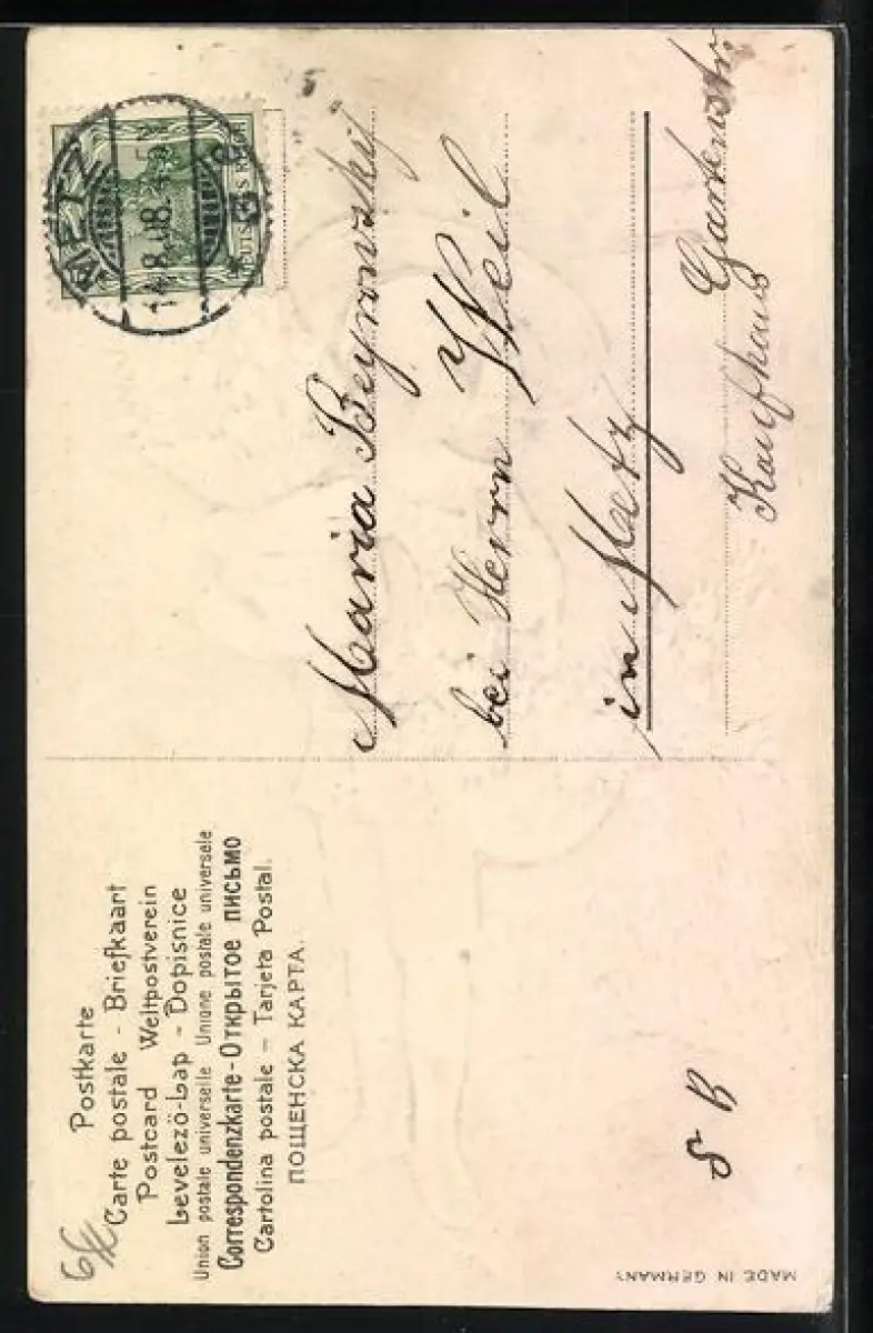 alte Ansichtskarte, gelaufen 1908, Eckknick re. unten, guter Zustand